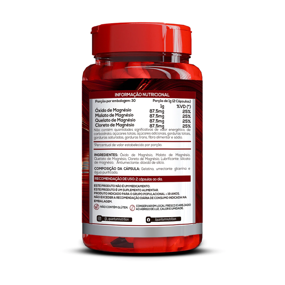 O Tetra Magnésio da Quantum Nutrition reúne quatro formas poderosas de magnésio – Óxido, Quelato, Cloreto e Malato – para oferecer um suporte completo ao corpo e à mente.
